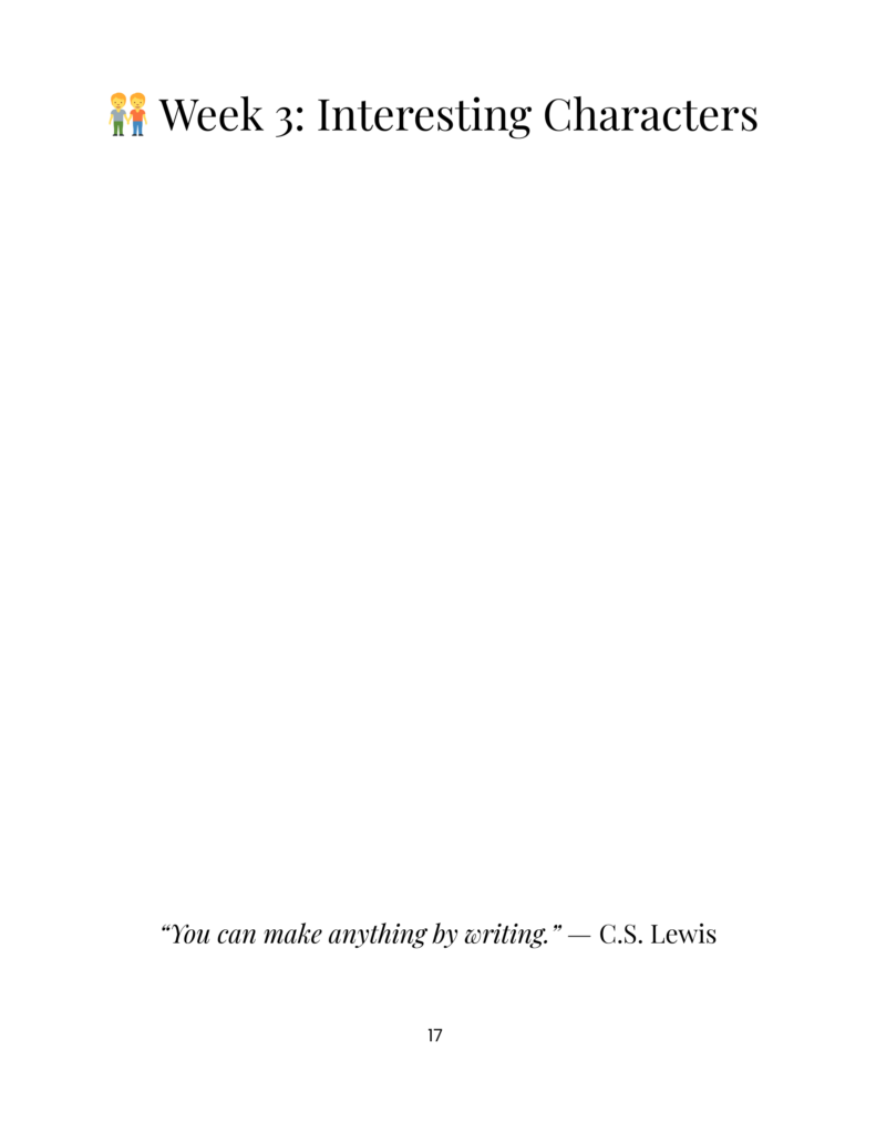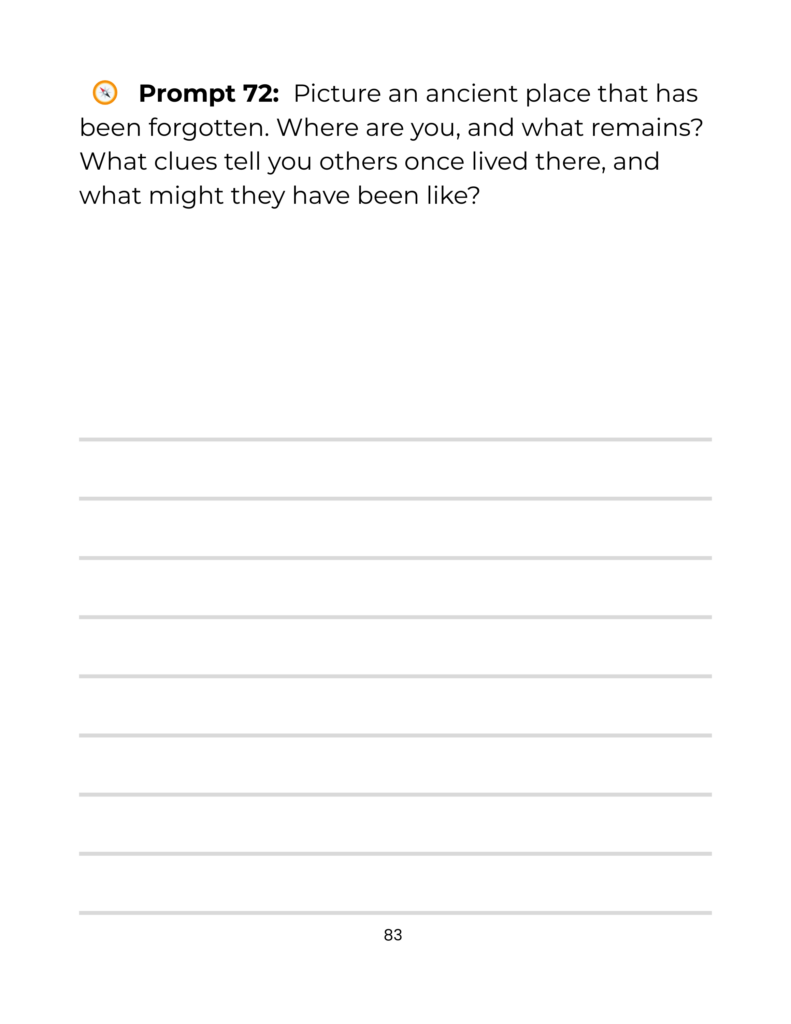 Scenes, characters, adventure, mood, perspective, imagination, and storytelling prompts that help children enjoy writing and encourage creativity without pressure.
